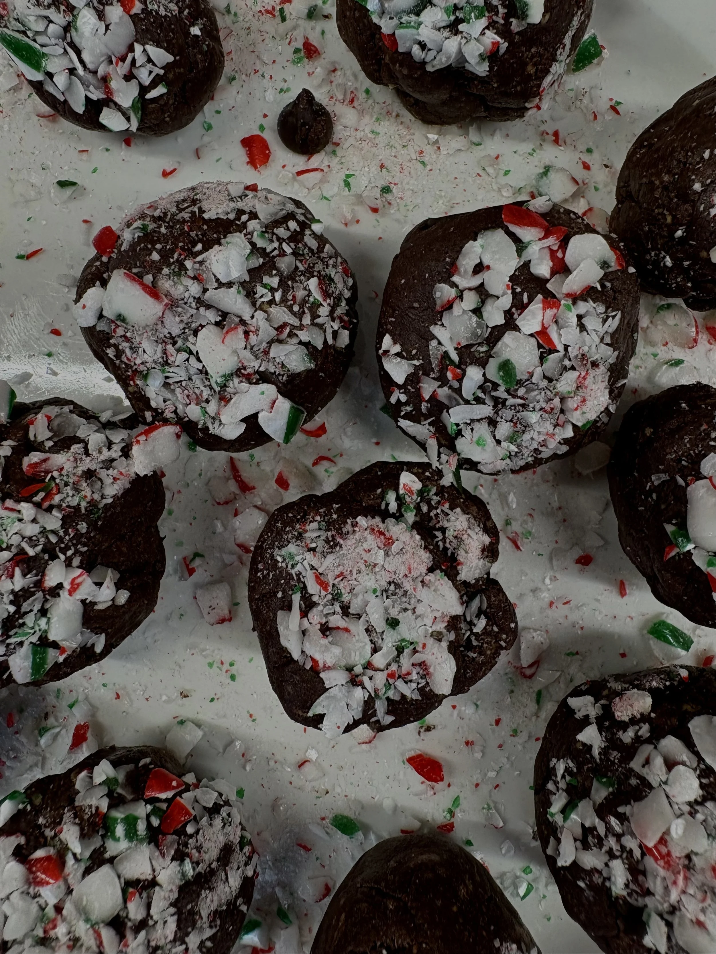 Roll into balls and top with extra crushed candy cane for a festive finish.